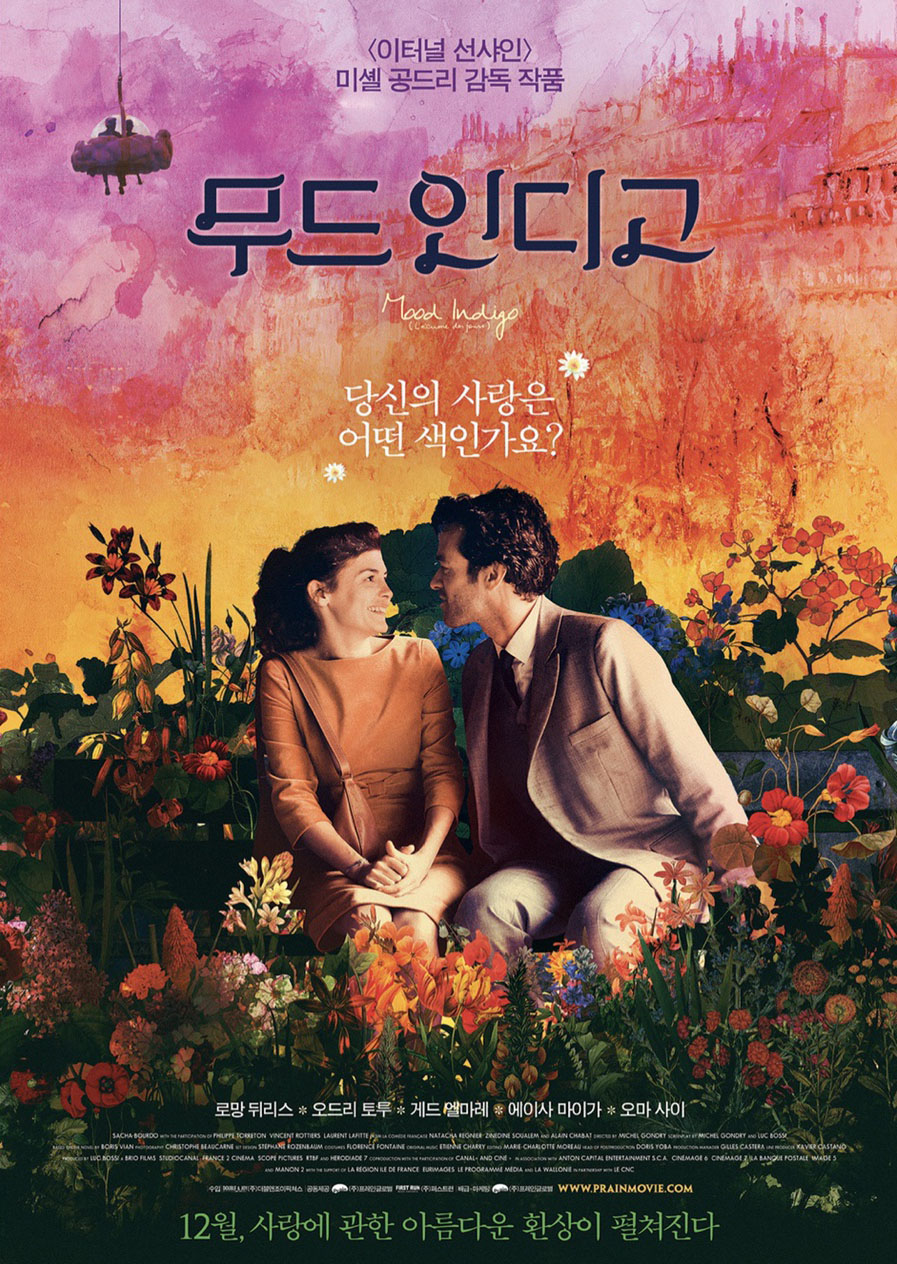 무드 인디고는 미셸 공드리 감독의 2013년 프랑스 초현실주의 로맨틱 판타지 영화입니다. '백일몽 위의 거품'을 원작으로 한 이 영화는 파리에 사는 젊은 남자 콜린(Romain Duris)의 이야기를 담고 있습니다. 콜린은 아름답고 매력적인 여자 클로에(Audrey Justine Tautou)와 사랑에 빠졌습니다. 콜린과 클로에는 열정적인 사랑을 시작합니다. 클로에가 희귀하고 특이한 병에 걸려서 그들의 행복은 끝이 납니다. 클로에의 폐에서는 수련이 자라게 됩니다. 건강을 회복시키기로 결심한 콜린은 치료법을 찾기 위해 전념합니다. 의사의 도움을 구합니다. 평범하지 않은 기발한 방법으로 연구하며 실험에 참여합니다. 이런 과정들은 관객들을 시각적으로 독특하고 특이한 초현실적 세상으로 안내해 줍니다. 독특하고 환상적인 사건으로 가득 찬 콜린의 세계는 점점 풍부한 상상력으로 가득 찹니다. 이 영화는 현실과 환상의 경계를 허물고 마법 같은 사실과 기발한 요소를 나타내고 있습니다. 사랑, 죽음, 그리고 삶의 연약함에 대한 내용을 담고 있습니다. 사랑의 씁쓸하고 달콤한 본성과 질병이 둘의 관계에 미치는 모습을 보여줍니다. 공드리의 영상 스타일과 창의적인 이야기를 보여주는 동시에, 사랑과 죽음의 경험에 대해 가슴 아프고 우울한 묘사를 보여줍니다. 어두운 이미지와 함께 초현실적이고 추상적인 장면을 나타냅니다. 기쁨의 순간과 슬픔과 비극의 순간을 나란히 보여주며 감정을 전달하고 있습니다. 사랑과 상상력이 합쳐져 아름다운 색감과 초현실적인 화면으로 관객들을 초대하는 매력적인 영화입니다.