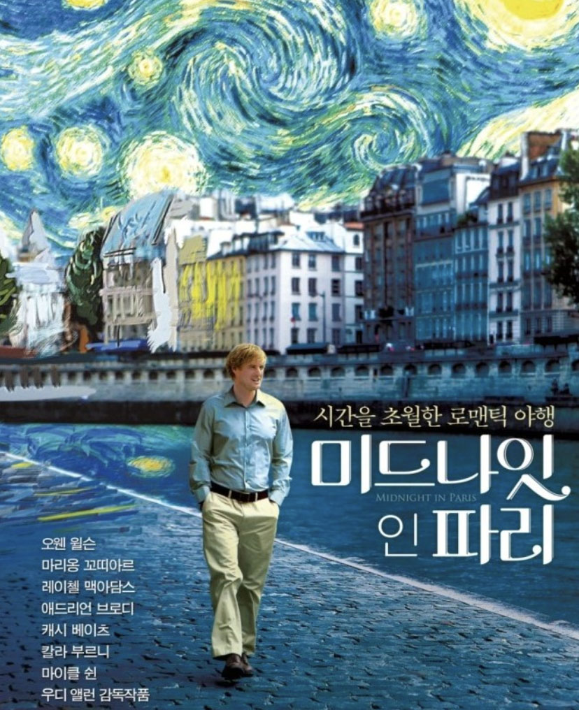 우디 앨런 감독이 2011년 개봉한 로맨틱 코미디 영화입니다. 작가 지망생인 주인공 길 펜더(Owen Wilson)가 파리에서 매일 밤 12시가 되면 1920년대로 시간 여행을 떠나는 이야기입니다. 길 펜더는 이네즈(Rachel Anne McAdams)와 약혼을 했는데, 이네즈의 부모님과 함께 파리를 여행하며 1920년대의 파리에서 살고 싶은 열망이 더욱 강렬해졌습니다. 자정이 되면 길은 마법처럼 꿈의 시대로 옮겨집니다. 그곳에서 그는 어니스트 헤밍웨이, 스콧 피츠제럴드, 거트루드 스타인, 살바도르 달리와 같이 그 시대를 상징하는 문학 및 예술 인물들을 만나게 됩니다. 헤밍웨이와 친구가 되고, 1920년대의 아름다운 여인 아드리아나(Marion Cotillard)와 사랑에 빠지며, 그 당시의 활기차고 문화적인 분위기에 휩싸이게 됩니다. 길 펜더는 시간 여행을 하며 과거와 현재의 삶 사이에서 갈등하기 시작합니다. 그는 자신의 미래를 결정해야 하는 선택에 직면하면서 사랑과 예술 그리고 과거를 이상화하는 향수에 대한 새로운 관점을 얻게 됩니다. 영화는 기발한 시간 여행을 통해 현재와 과거 시간에 대해 생각하게 합니다. 과거를 낭만화하려는 인간에 대해 질문을 제기하고 현재의 순간을 받아들이는 것에 대한 중요성을 강조합니다. 우디 앨런의 연출은 파리의 상징적인 랜드마크와 각 시대의 독특한 분위기를 보여주며 파리의 고혹적인 아름다움을 담아냈습니다. 주연 배우와 조연 배우들의 연기는 등장인물들에게 생기를 불어넣고 이야기에 깊이를 더해줍니다. 관객들에게 로맨스, 코미디, 판타지가 어우러진 시간 여행을 안내합니다. 과거를 되돌아보게 하고 현재에서 기쁨과 성취감을 찾도록 격려하고 있습니다.