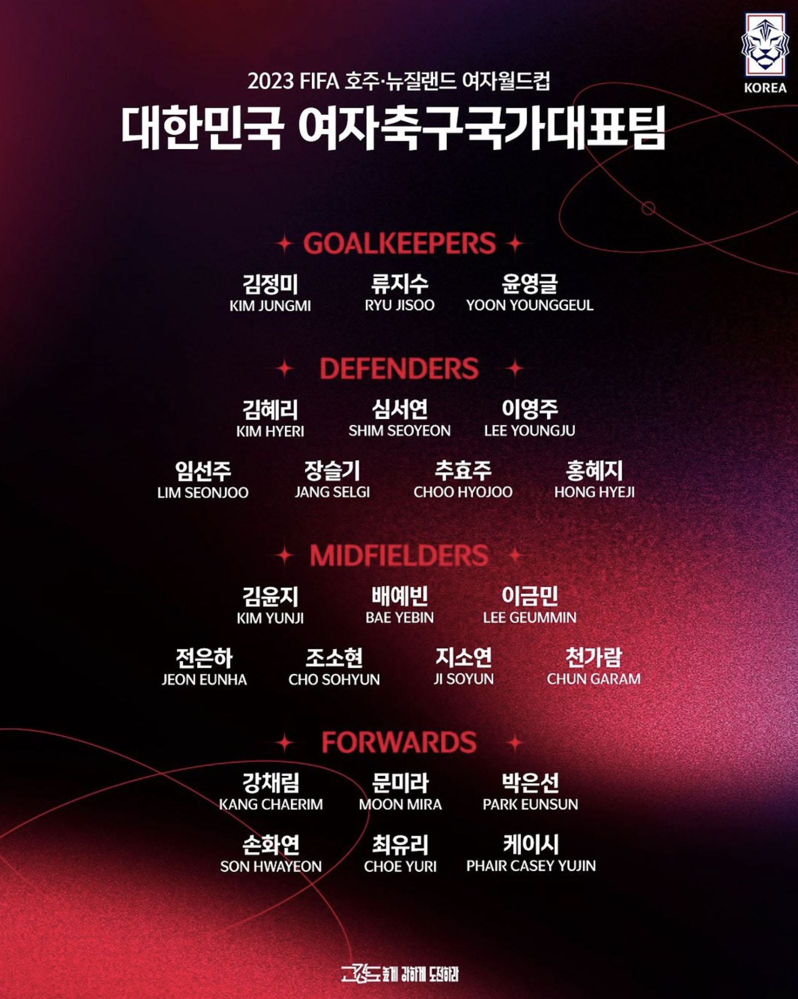 이번 2023 월드컵에서는 조별리그를 통과하고 16강을 넘어 최고 성적을 기록했으면 좋겠습니다. 다치지 말고 좋은 경기 보여주기를 응원합니다!